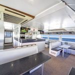 Blue Destiny is a well designed and well laid out vessel that give guests a feeling of space, whether on the huge carpeted back deck or the equally as large carpeted flybridge or the air-conditioned saloon.