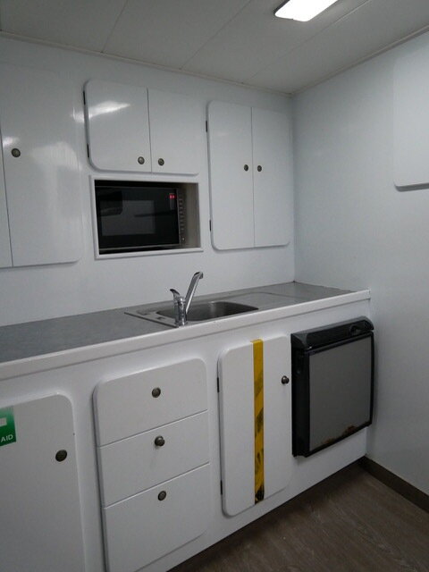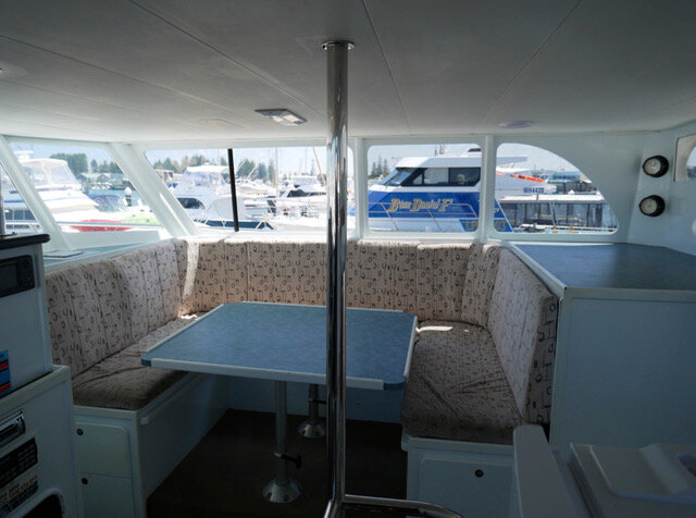 The large back deck has been fitted with carpet and seating as well as a custom built table, which converts to a day bed.